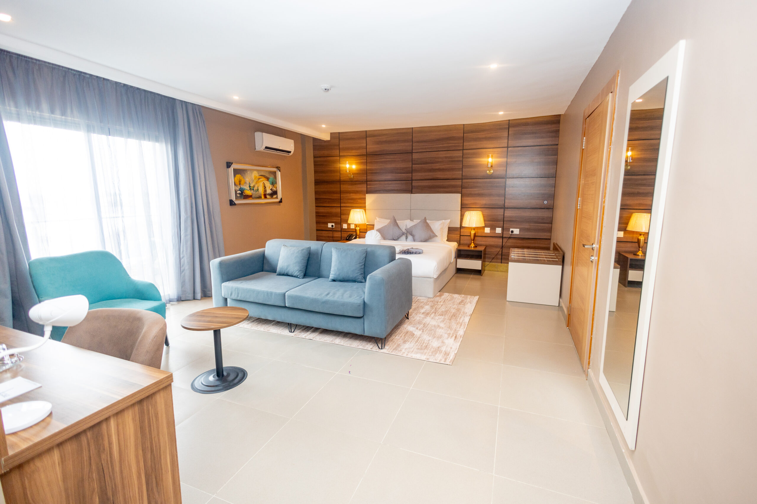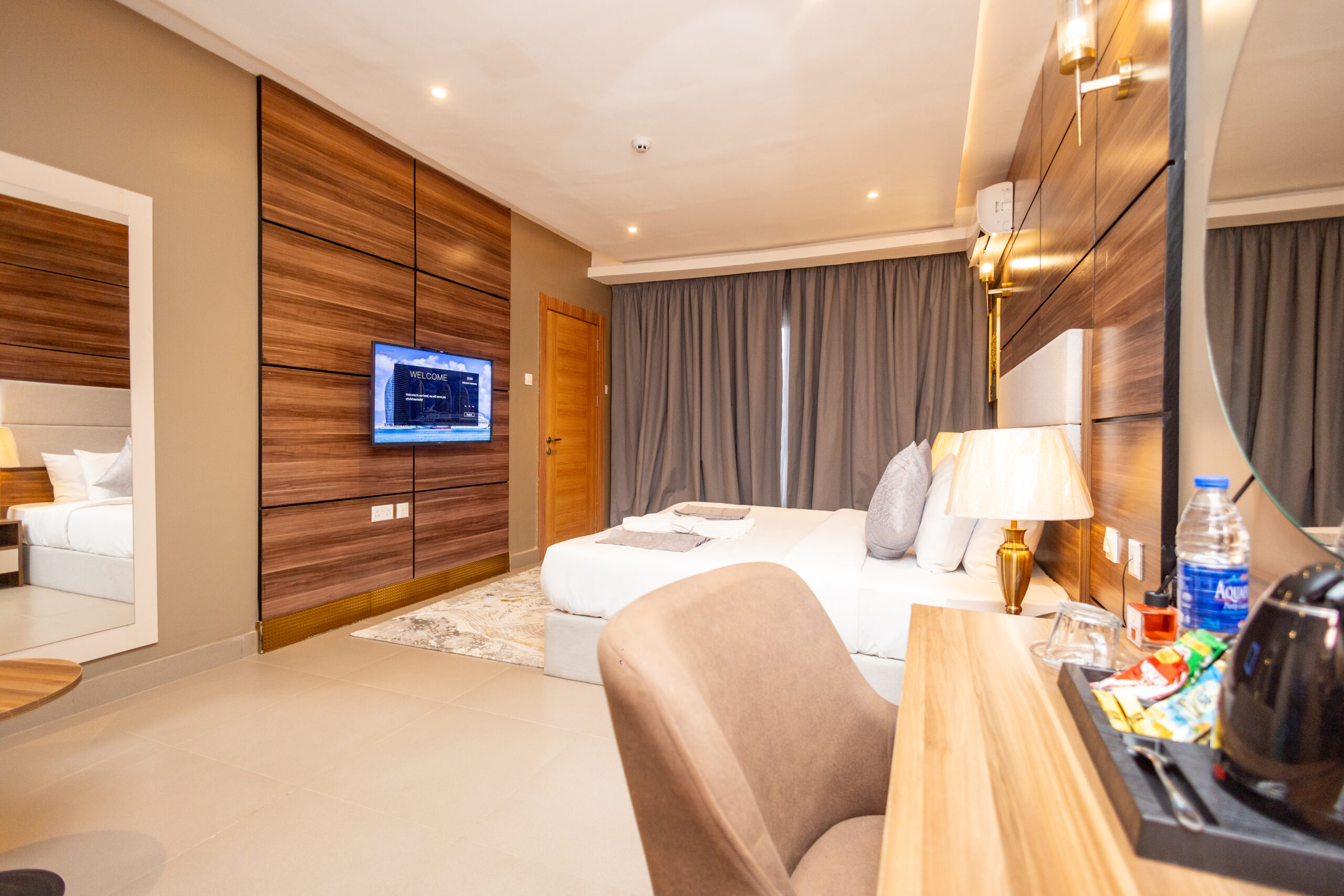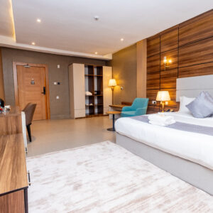 The Suite is the hotel’s premium accommodation. It includes a separate living room, bedroom, dining area, and luxury bathroom with all features present in the business suite. The suite is fully air-conditioned and furnished with modern décor, smart flat-screen TV with in-room compendium like IPTV, mini-fridge, and complementary high-speed Wi-Fi. It is perfect for families, long-stay guests, and special occasions.